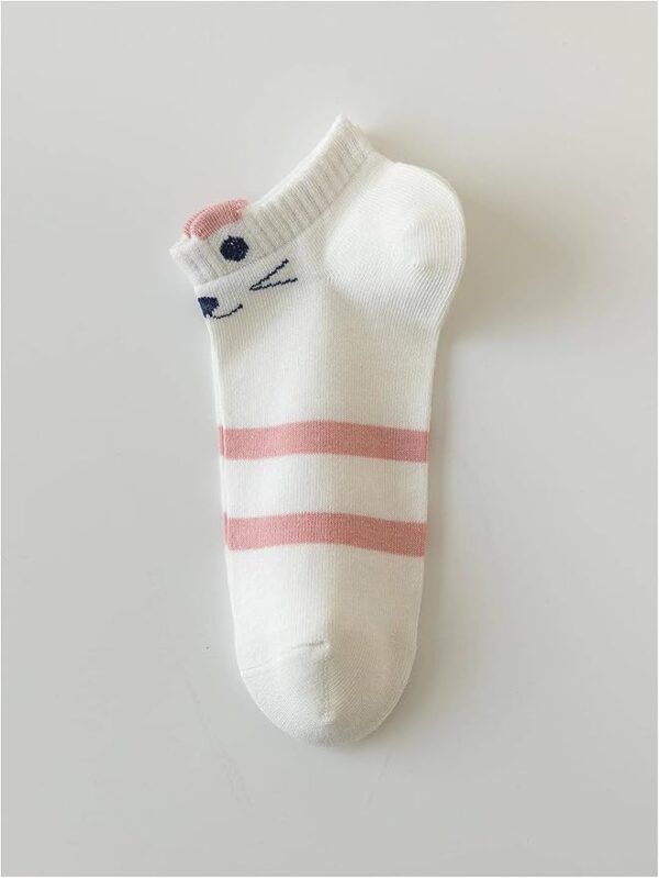 Add charm and comfort to your everyday wear with this Pack of 5 Cute Ankle Length Socks for Women featuring adorable cat face designs in soothing baby pink and white tones. Crafted from a soft and breathable cotton blend, these ankle socks are gentle on your skin and perfect for daily use. Whether you’re lounging at home or stepping out in sneakers, these cute socks for girls and women offer the ideal combination of style and comfort. Designed with premium-quality fabric and a snug fit, these cat design socks are must-haves in your wardrobe.