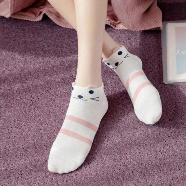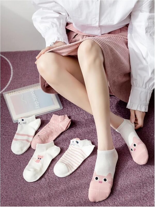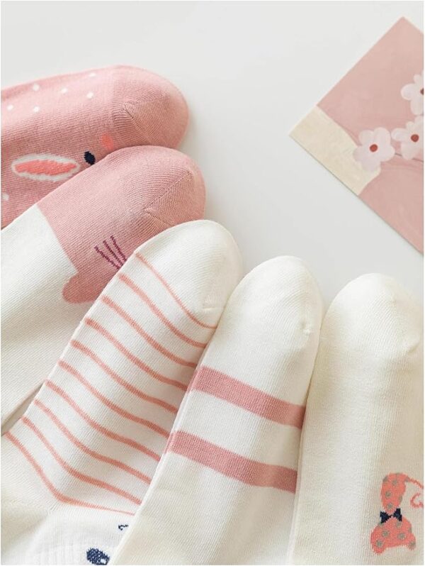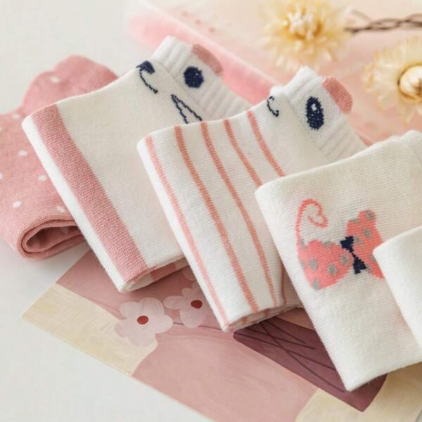 • 🌈Pack of 5 Stylish Cat Design Socks – Features playful cat faces and sweet pink patterns that add fun to any outfit.